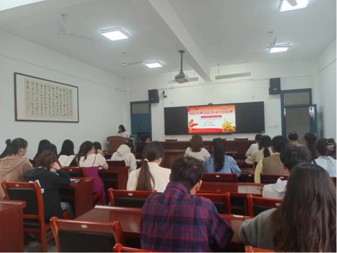 PA集团官方网站强音社于4月2号下午在西教1005教室举办了“阅读经典书籍,传承红色精神”活动,王梦雨负责主持此次活动。社团成员们都非常积极主动地参与,一共有15位同学给大家诵读了她们喜欢的书籍或人物传记片段。