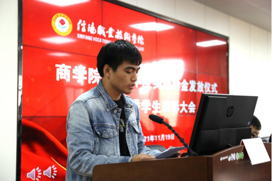 冷书记宣读获得本学年奖助学金的学生名单,领导老师们为他们颁发奖学金和助学金。国家励志奖学金获得者李凯嵽同学和受助学生代表乔燕歌同学分别发言,他们表示奖助学金代表了国家和社会对大学生的鼓励与期待,体现了党和政府对高校家庭经济困难学生的关怀和期望,切实解决了受助学生经济上的困难,他们将不忘初心,心怀感恩,立志成才。