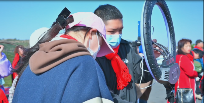 仪式启动后,企业负责人带领实践团成员一路向上遍赏茶园风光,从高高的山顶向下望去,整个茶园仿佛就像一个聚宝盆,一排排整齐的茶树从山底盘旋而上,像一个个绿色的堡垒。电商直播专业的同学们借着优美的春光在茶山上随即开启了直播试练,用自己的专业向广大网友推介美丽的茶山,清冽的春茶。
