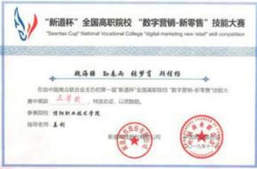 市场营销教学团队积极探索人才培养模式的改革,注重实践教学与理论教学相结合,组织学生参加省职业技能竞赛、金砖国家技能竞赛、全国数字营销大赛等赛事,取得省赛一等奖两项、二等奖四项等优异成绩。