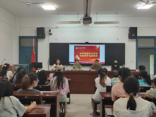 为做好2022年专升本考试相关工作,切实加强专升本考试期间的诚信教育,进一步端正考风、严肃考纪,营造文明、诚信考试的良好氛围,促进良好校风和学风的形成,同时也做好学生思想教育及心理疏导,PA集团官方网站于6月1日、2日分班开展“树文明考风,做诚信考生”主题班会,学院领导分别包班进班宣讲,同时就今年的毕业生就业形式、就业政策进行宣讲。