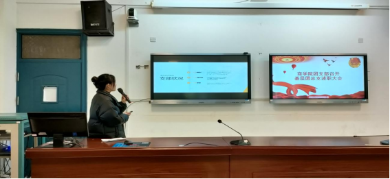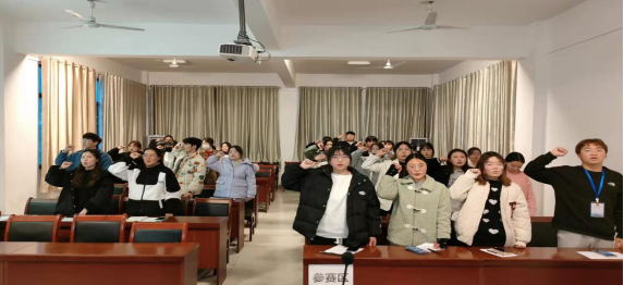 接下来由24位团支书依次进行述职汇报,由评委老师打分。会议最后,由团总支秘书长胡慧萍带领全体成员重温入团誓词。