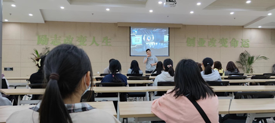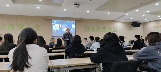 随后的座谈会中,全体人员先观看往届“互联网+”创新创业比赛视频。接着就业办黄太国主任分析了当前创业的前景,结合实例介绍了大学生创新创业国家将给予的优惠政策,让在场学生对大学生创新创业有了一个更加深入的了解。同时介绍了学校为在校学生创新创业给予的支持,鼓励学生积极入驻。他强调,创新创业重在创新,鼓励同学们要思路创新、理念创新、制度创新、模式创新、方法创新,才能进行全方位创新。