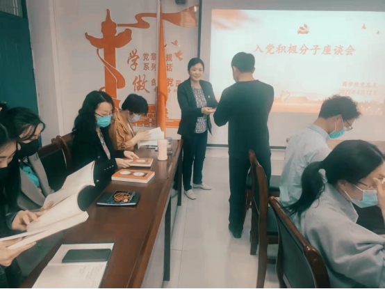 座谈会上,刘书记、吴院长为入党积极分子发放红色读本,勉励入党积极分子多读书、读好书,从红色书籍中汲取精神养分。