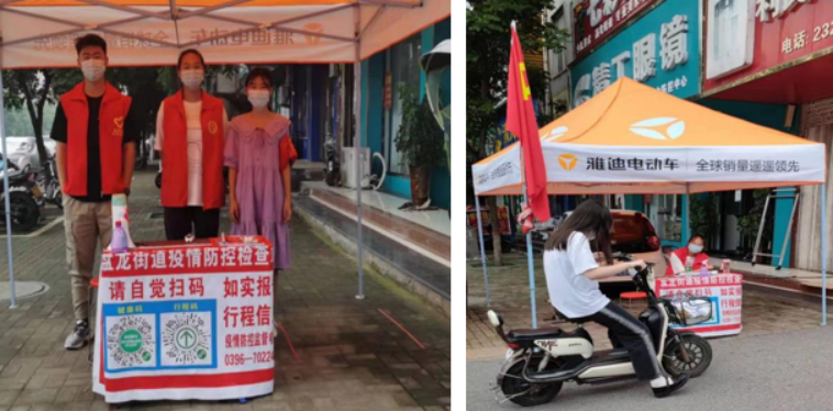 王诗雯同学在确山县社区参加志愿者服务工作,参与了街道宣传工作,宣传疫情防控知识,做好排查登记工作。对于进出街道的群众,未戴口罩的提醒戴口罩;行程码绿码所在地区为非驻马店需如实登记并且对于风险区需上报上级并做记录。岗点值守,测温消毒、查看进出人员健康码的志愿服务让她体会到了奉献的快乐,从参与这份工作中切实体会到社区工作人员的辛苦,相信这段志愿服务将是她人生最美的回忆。