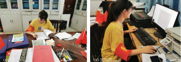 甄钤钤同学在驻马店市新蔡县陈店镇政府扶贫办公室参加志愿者服务工作,通过志愿者服务,为家乡的疫情防控工作贡献出自己的一份绵薄之力,用自己的实际行动展现了疫情当前,当代青年勇于奉献的担当精神。无论是面对炎热的气候,还是复杂的工作,她都能积极认真完成。参与志愿者活动,不是一时兴起,而是青年人想要通过亲身实践,努力跟上祖国前进的步伐,收获一路上的所见所闻。