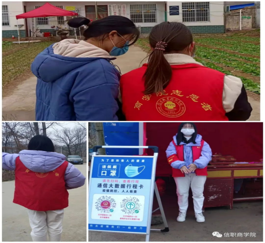 与此同时,面对疫情的复发,他们毫不退缩,主动请缨参加了各自家乡、社区中疫情防控的志愿者工作,他们挨家挨户上门调查有无返乡人员以及行程码健康码,对出入的车辆进行测量体温,在这个寒冷的冬天,他们为大家送去温暖的同时也展现出了一名大学生应有的责任和担当。