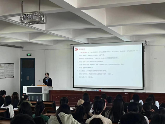 为增进学生与企业间的了解,部分企业在PA集团官方网站三个教室举办了12场宣讲会。企业相关负责人对应聘者的具体要求和晋升渠道进行介绍,并当场对同学们关于工作的疑问做详细的解答。