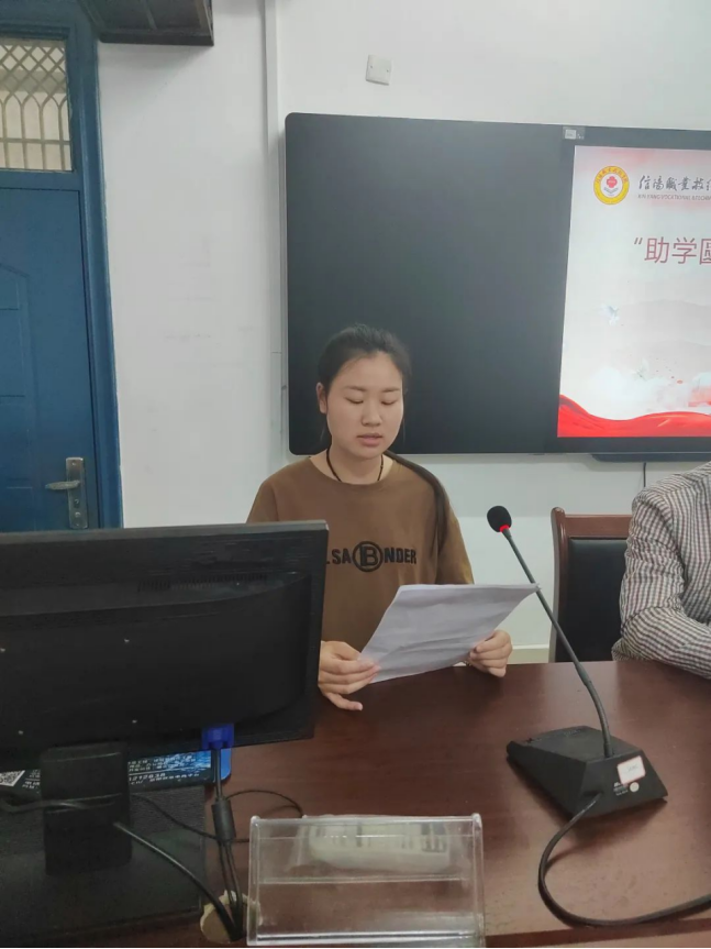 曹孔爱同学提到青年是一生中成长和学习的重要阶段,国家的助学贷款政策既保证了学生的学习,又保证了学业的完成,帮助我们解决了因经济困难而导致的后顾之忧。她表示走出绝境的秘诀,是拼命抖掉身上的泥土,使之成为自己的台阶。