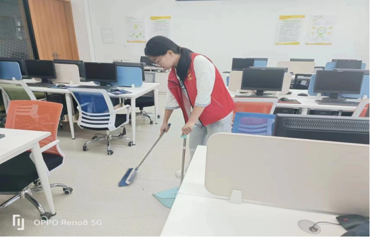 志愿者按分配的任务对教室的地面、桌子以及窗台进行了全方面的清理。活动过程中,志愿者用一丝不苟的态度去完成自己所负责的部分,尽自己最大的努力做到最好。在志愿者的打扫下教室的每一个窗台,每一张桌子都干干净净。志愿者树立了良好的榜样,更通过志愿实践活动不断完善,充实自己。