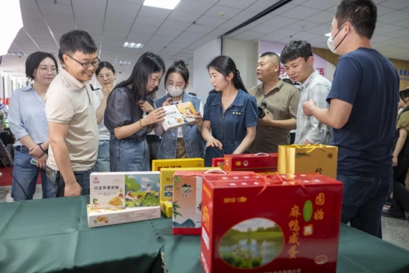 此次信阳市职教活动周职业教育办学成果展总设展区4个,展位55个,我院在电商带货展示区进行展示,展出信阳农特产品,并现场进行了电商直播带货。