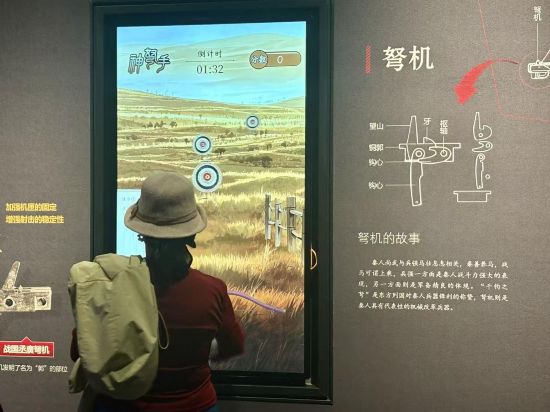 同样在陕西,宝鸡青铜器博物院内,数字化手段让游客沉浸式体验青铜器文化。点击互动墙,选择青铜器,通过手指滑动带着青铜器旋转,游客可以近距离感受青铜器的细节;点击互动屏,跟随指示开始游戏,游客正在通过互动游戏感受弩机的魅力。